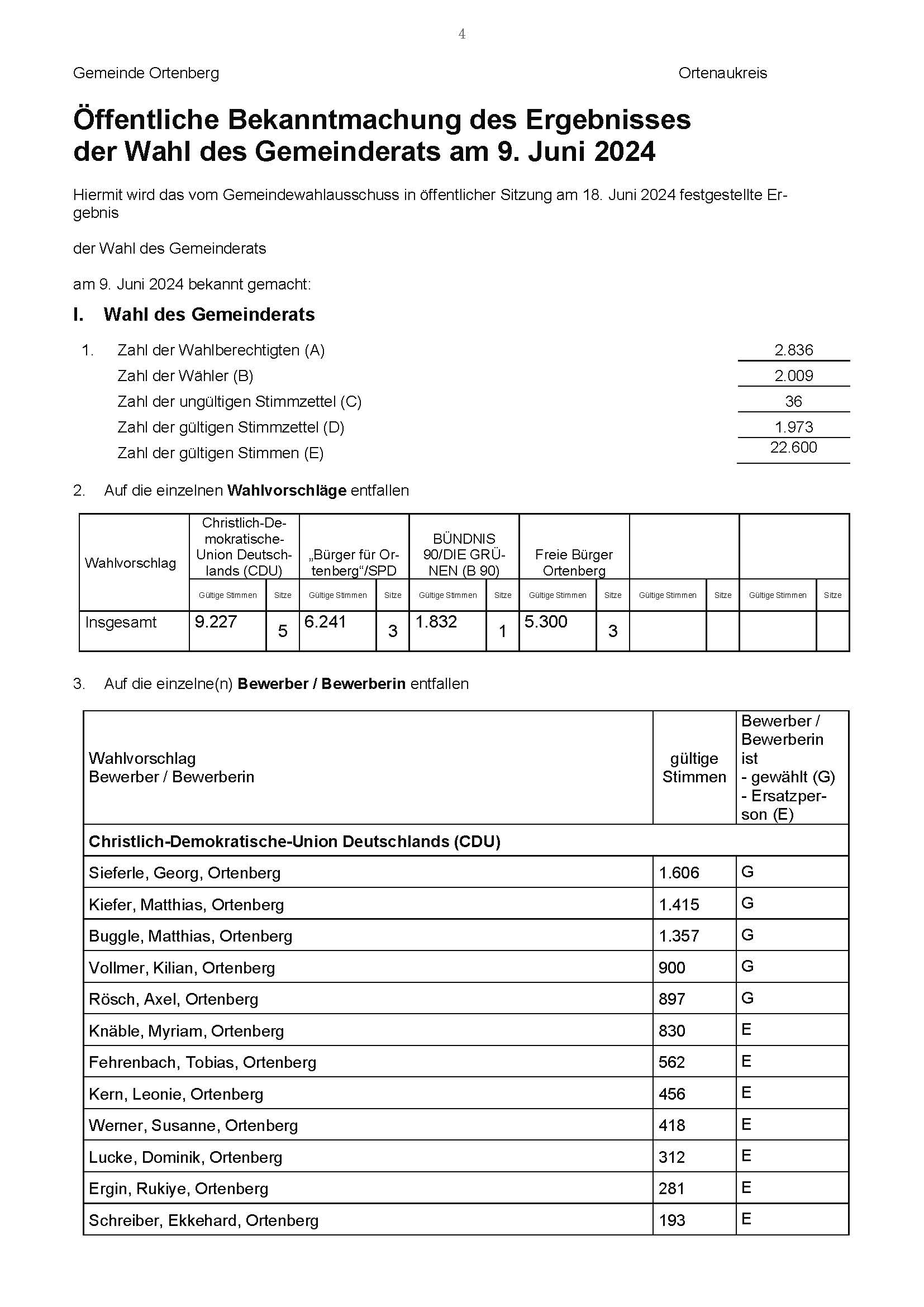 Ergebnisse der einzelnen Bewerber/-innen