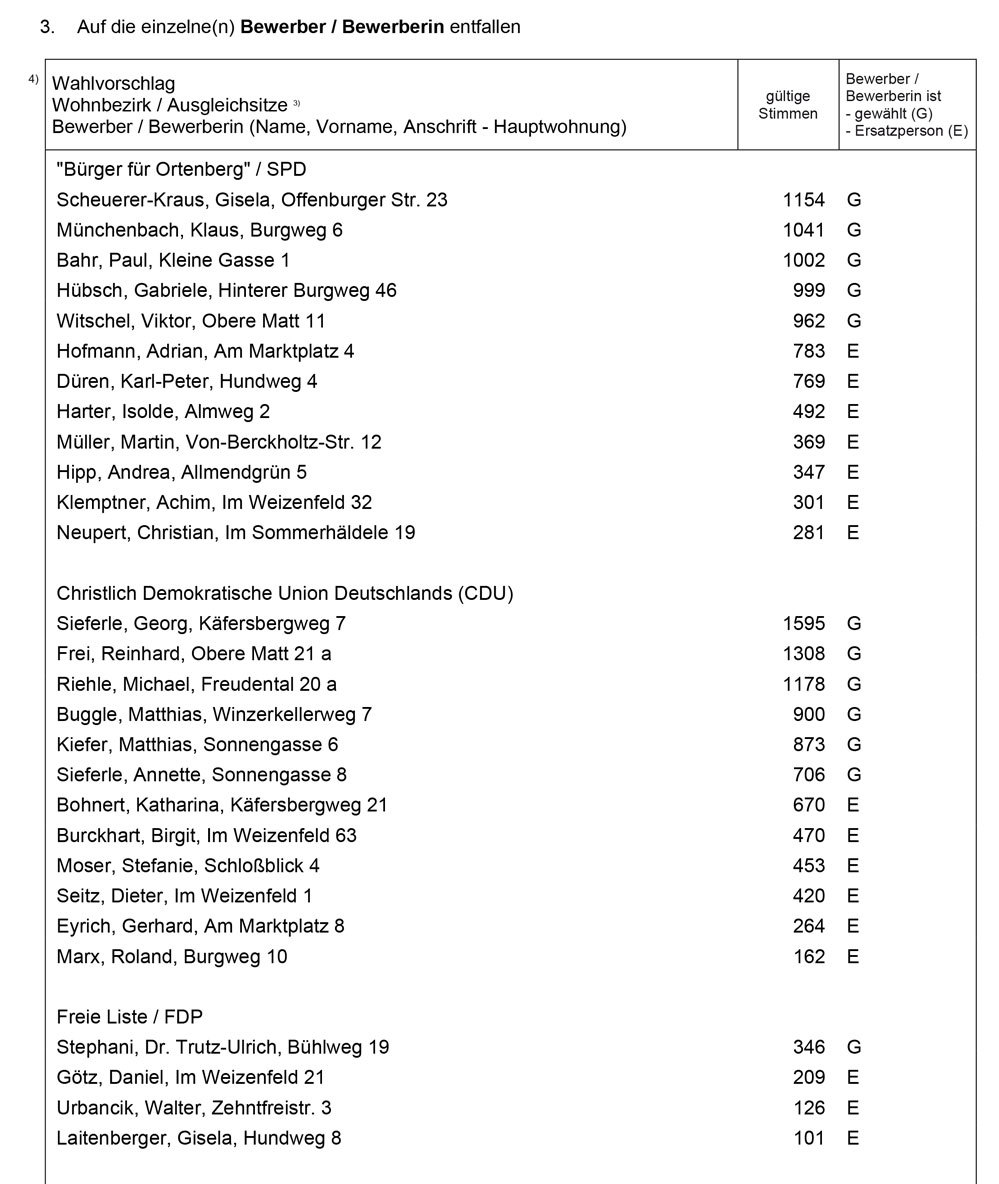 Ergebnisse der einzelnen Bewerber/-innen